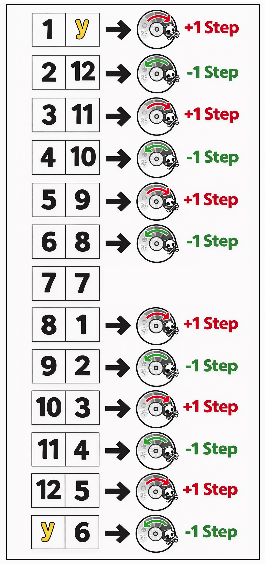 (12) 현재 플레이어는 마술사가 된다. 다른 플레이어는 눈을 감는다. 마술사는 이미 잘린 같은 숫자 두 전선을 선택해 각각을 플레이어의 토큰 홀더로 되돌린다. 그리고 “아브라카다브라 이 전선은 잘린 게 아니었습니다.” 라고 외친다. 다음 플레이어 순서로 넘어간다.
